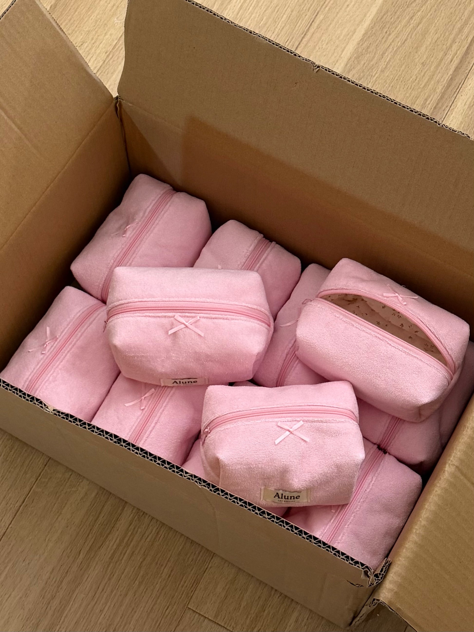Introducing our Pink Puff Makeup Bag, a tender blush toned piece crafted with gentle hues and heartfelt care. Each bag is hand-cut and sewn, creating a puffy quilted terry texture that feels cloudlike and comforting to the touch.